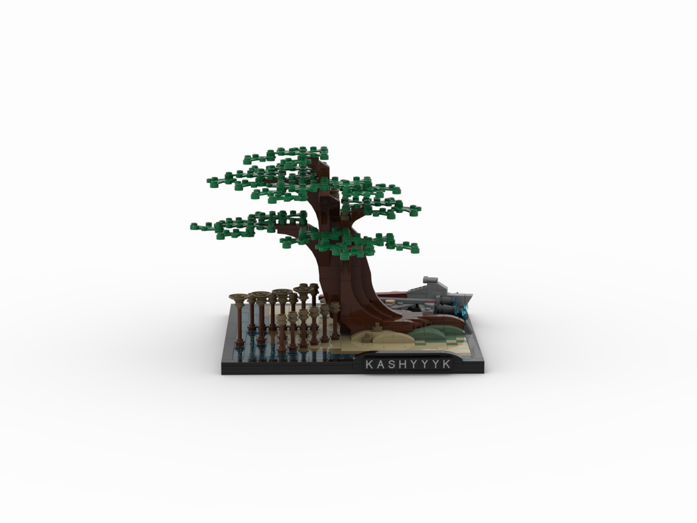 Digital and pdf instructions files to build a LEGO Kashyyyk Bonsai Tree. Footprint is 24x24 studs. Includes mini Venator.